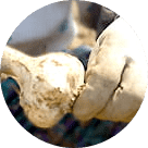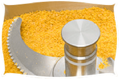 乾燥したにんにく卵黄を粉砕機で砕きます